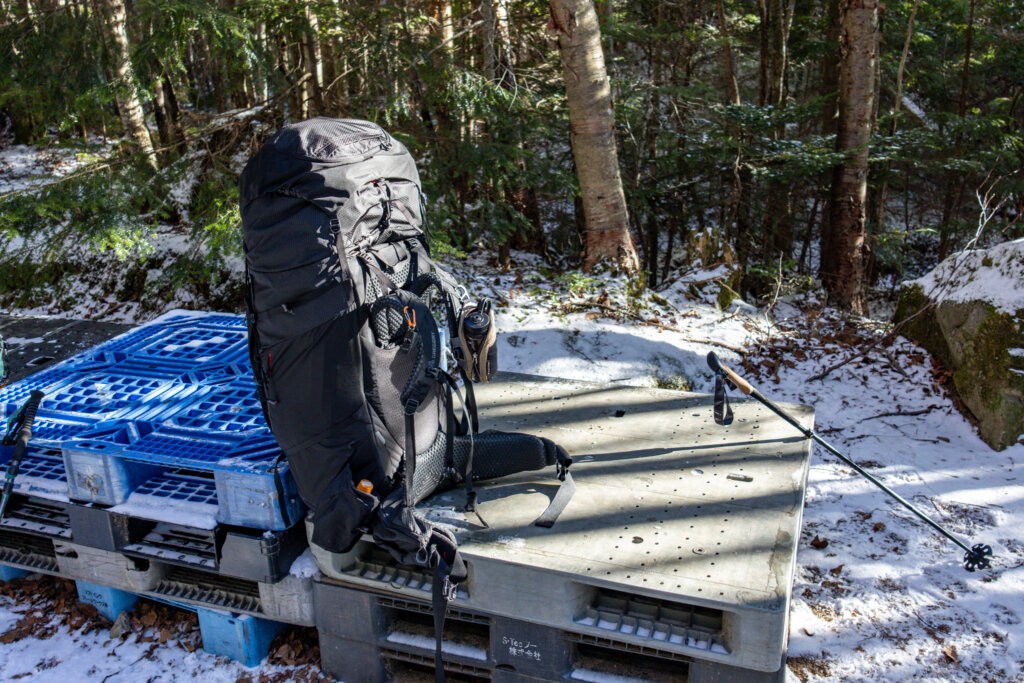 そこから雪山テント泊装備+クライミング装備の26kgのザックを背負ってスタートです。