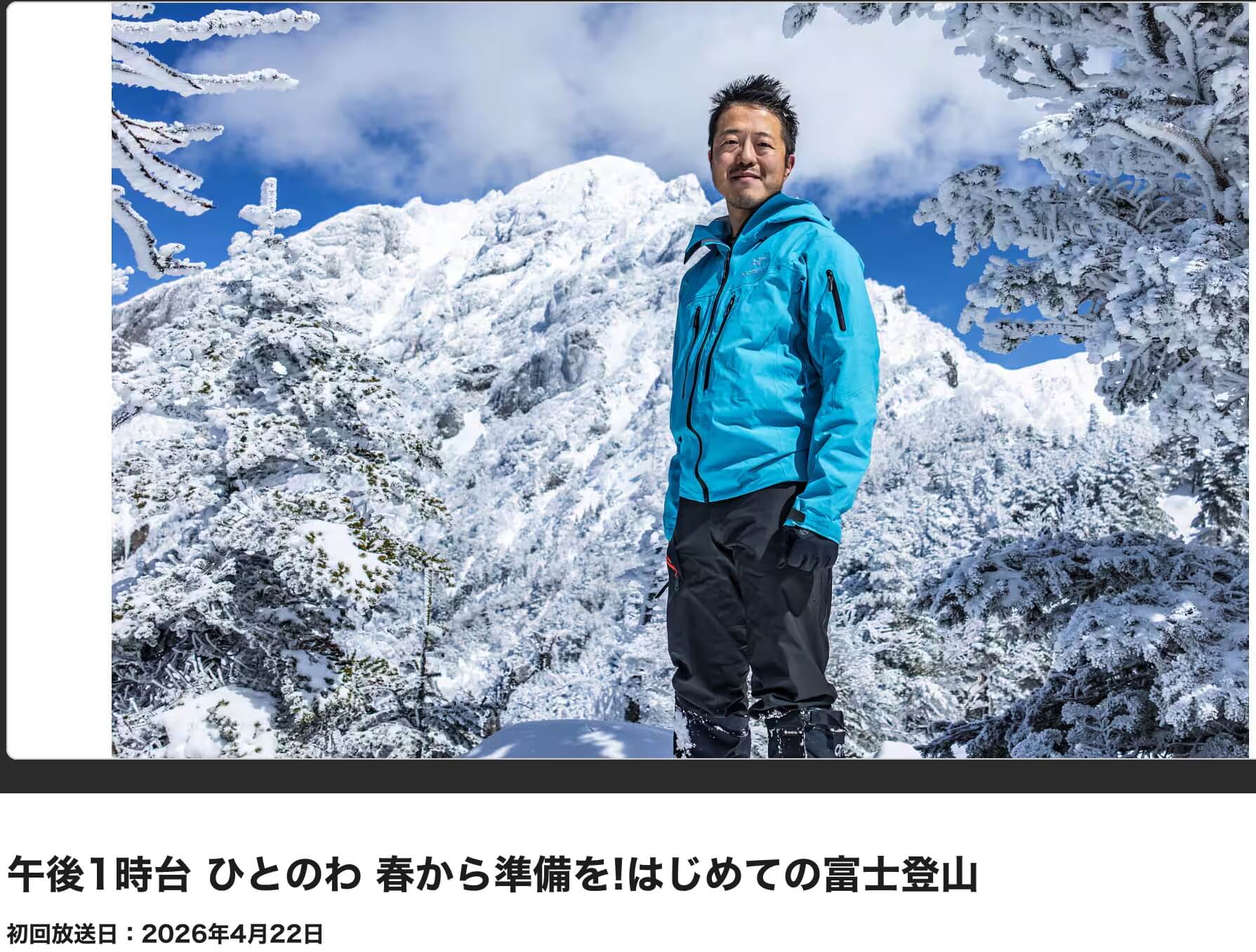 スタジオ生放送で登山ガイドとして出演し、コメントさせて頂くことになりました。